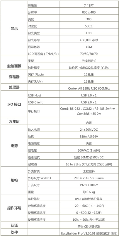 • 適用EasyBuilder Pro組態軟件,擁有流動塊、分期付款、操作記錄、配方數據庫等新功能,簡單易用